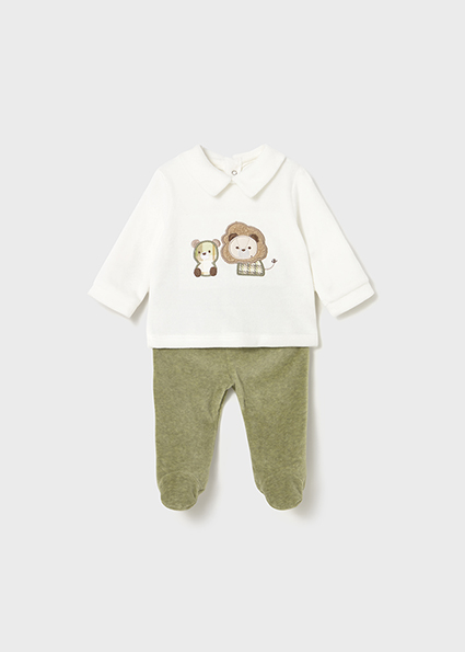 Conjunto de dos piezas para recién nacido compuesto por una camiseta de manga larga y polaina a juego.